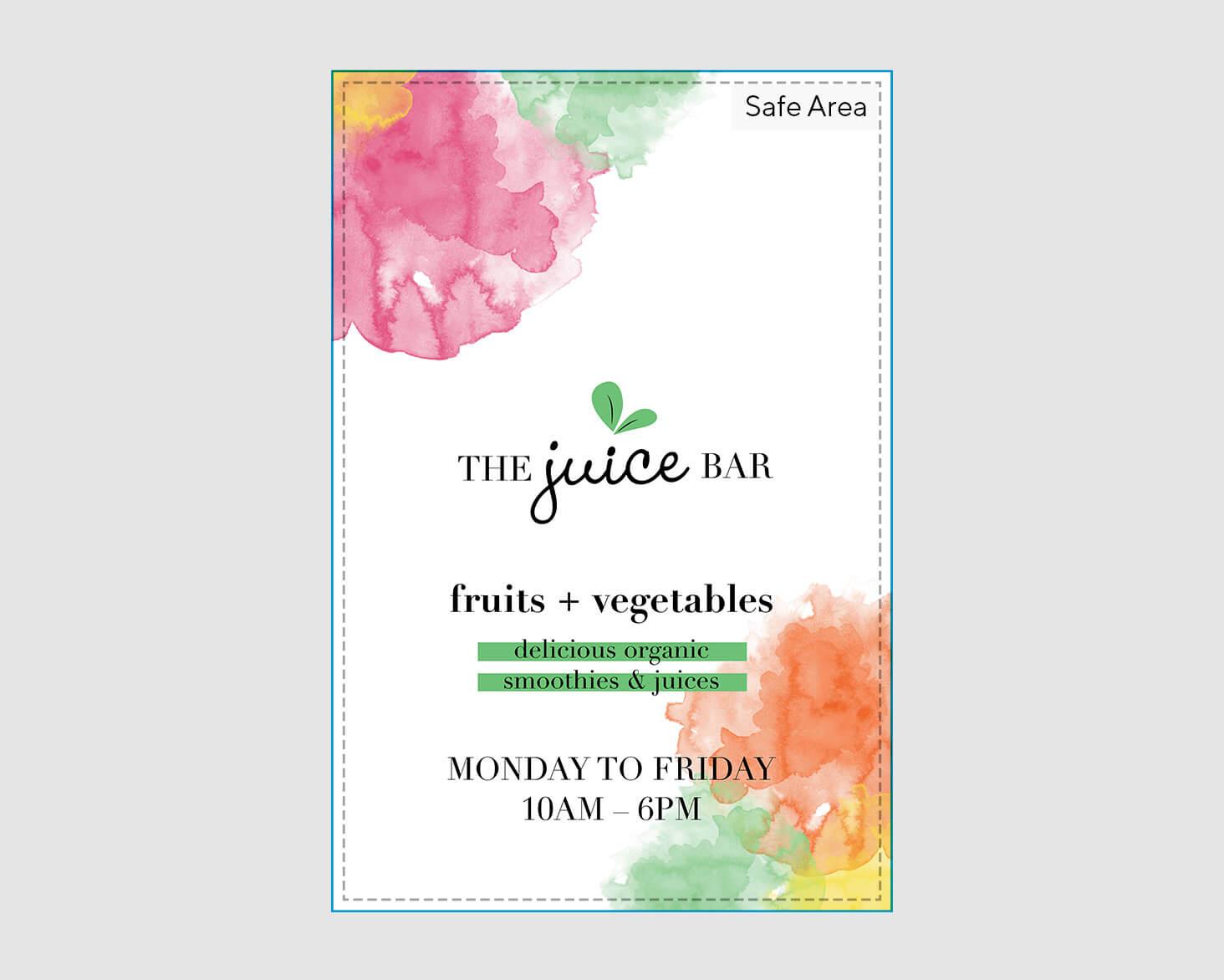 To avoid an unwanted white border, drag all background content to the edges of your template. We’ll trim your sign between the safe area and the bleed line.