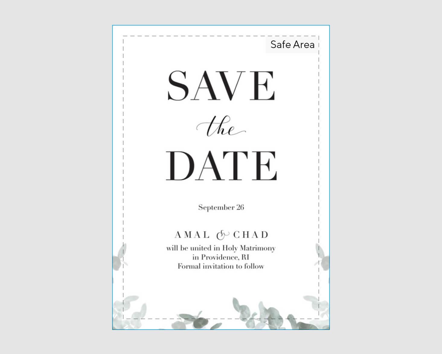 To avoid an unwanted white border, drag all background content to the edges of your template. We’ll trim your cards between the safe area and the bleed line.