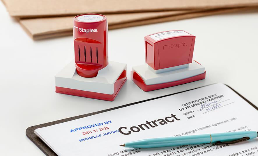 Stamps hold up to 21 lines of information and are available in batches of 1-5. Select from pre-inked and self-inking styles in black, red, blue, green or violet ink.