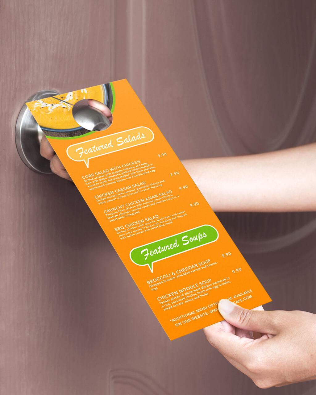 Full-color custom door hangers are an easy, effective way to get noticed. They’re great for hospitality, service offerings, menus and more.