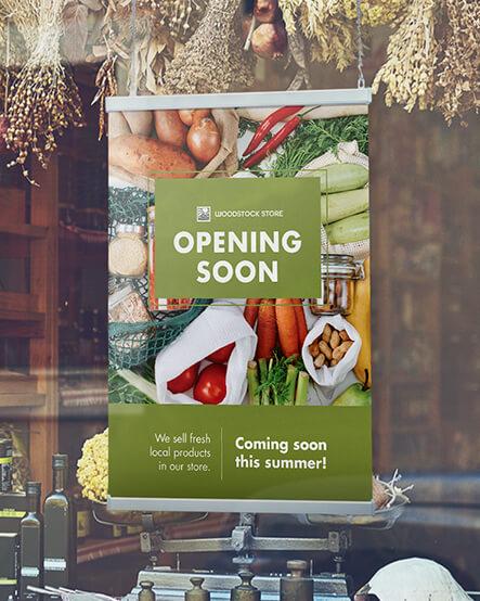 Signs, banners and posters are the perfect trio of marketing materials for your small business or side gig. Banners are a great option to boost foot traffic at a grand opening. Need some inspiration? Easily advertise an in-store event by placing posters around town. Create an A-frame sign for a busy sidewalk or market and promote your business on the go with a magnetic car sign.